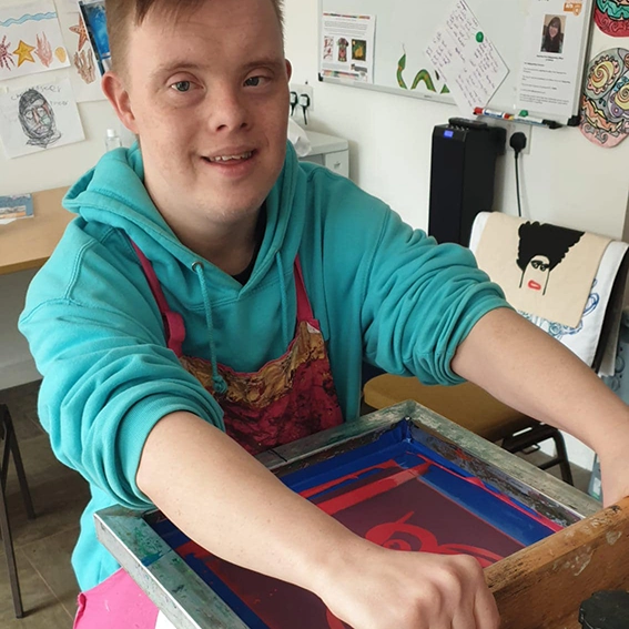 for adults with learning disabilities. Service users participate in mixed media, screen printing, performance and